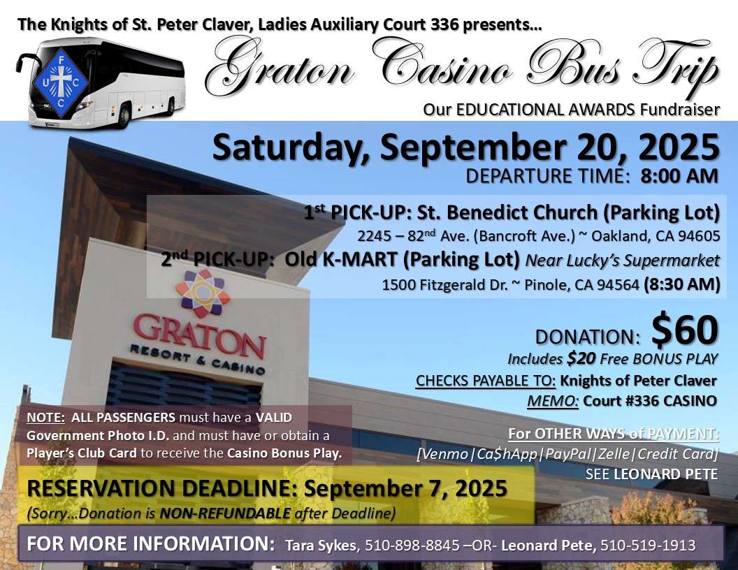 Ladies Auxiliary Court #336 is sponsoring a Bus Trip to